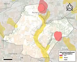 Le retrait-gonflement des sols argileux est susceptible d'engendrer des dommages importants aux bâtiments en cas d’alternance de périodes de sécheresse et de pluie. 16,1 % de la superficie communale est en aléa moyen ou fort (67,4 % au niveau départemental et 48,5 % au niveau national). Sur les 175 bâtiments dénombrés sur la commune en 2019, 92 sont en aléa moyen ou fort, soit 53 %, à comparer aux 81 % au niveau départemental et 54 % au niveau national. Une cartographie de l'exposition du territoire national au retrait gonflement des sols argileux est disponible sur le site du BRGM[18],[Carte 3].