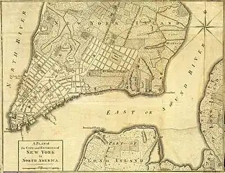 Au milieu des années 1760, les tavernes en dehors de la ville, comme celle de John Clapp dans le Bowery[3], sont devenues populaires dans le New York colonial, profitant de la juridiction du « Sunset Strip », à trois kilomètres du bureau de poste[4]. Sur un site appelé « Bowling Green » depuis 1722[5], Samuel Fraunces ouvre un jardin d'agrément, d'abord appelé Vaux-Hall Gardens[6], à New York, en 1767 [7] et il reçoit un principal concurrent [8] dans les jardins du Ranelagh, beaucoup plus grands, (du nom des jardins du Ranelagh à Chelsea, Londres)[1],[2], les deux apparaissent sur la carte de New York de 1767 de Bernard Ratzer occupant une colline boisée juste au nord des maisons de ville les plus au nord, du côté sud de Duane Street ; le site surplombait Lispenard's Meadows et la route riveraine menant à Greenwich Village. Les jardins Vauxhall d'origine sont situés sur un site plus petit sur Greenwich Street, près de la rivière Hudson, entre ce qui deviendra plus tard les rues Warren et Chambers, dans le quartier à la mode du sixième arrondissement ; l'école publique 234 se trouve aujourd'hui sur le site[2],[9]. La carte de Ratzer montre son jardin carré, classiquement divisé en quatre par des allées. Fraunces exploita Vaux-Hall jusqu'à l'été 1773 ; en octobre, il met aux enchères son contenu et vend la propriété[10]. Son avis mentionne deux grands jardins, une maison avec quatre pièces par étage et douze cheminées, et une salle à manger de 17m de long et 8 m de large, avec une cuisine en dessous[2]. Le Vauxhall proposait des concerts légers d'été [1] et présentait un musée de cire en plein air. Pour la saison de l'été 1768, il accueillit une exposition sur la vie de Scipion l'Africain qui comprenait un bosquet avec une reconstitution du chef militaire sous sa tente[2]. La Vauxhall est restée populaire tout au long de la période coloniale de New York et jusqu'à la fin du XVIIIe siècle[1].