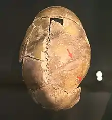 Crâne d'un homme de 20-30 ans tué dans le massacre de Talheim. Landesmuseum Württemberg, Stuttgart