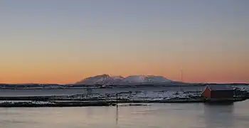 La partie sud-ouest de l'île est montagneuse, le point culminant étant le Trollvasstinden de 803 mètres de haut. Le reste de l'île est plutôt plat et marécageux.