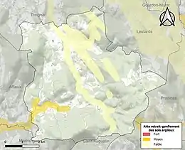 Le retrait-gonflement des sols argileux est susceptible d'engendrer des dommages importants aux bâtiments en cas d’alternance de périodes de sécheresse et de pluie. 2,6 % de la superficie communale est en aléa moyen ou fort (26,8 % au niveau départemental et 48,5 % au niveau national). Sur les 76 bâtiments dénombrés sur la commune en 2019, 3 sont en aléa moyen ou fort, soit 4 %, à comparer aux 36 % au niveau départemental et 54 % au niveau national. Une cartographie de l'exposition du territoire national au retrait gonflement des sols argileux est disponible sur le site du BRGM[17],[Carte 2].