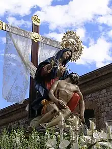 Les rituels les plus courants sont les défilés religieux ou les processions, accompagnés du chant local du Stabat Mater et des veillées aux chandelles[8],[9].