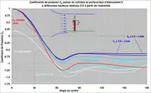 On remarque[réf. nécessaire] que, par rapport à la courbe rouge rappelant les autour du cylindre infini, la courbe blanche (qui montre les mesures de les plus proches de l'extrémité) est plus négative ; cette distribution de pression, après intégration, donne un très fort. Il en va de même de la courbe bleu très clair.