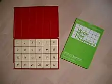 L'ensemble se compose d'un livret de tâches, d'un boîtier rouge plate avec de petites dépressions et d'un certain nombre de carreaux qui s'intègrent dans les dépressions et sont imprimés des deux côtés - sur le devant avec un numéro, sur le dos avec la partie d'un motif. L'objectif est de résoudre un ensemble de tâches à partir du livret des tâches et d'insérer les carreaux dans le boîtier en fonction des résultats. Le boîtier est ensuite fermée, retournée et rouverte - en comparant le motif au dos des carreaux et le dessin imprimé dans le livret, l'apprenant voit toute de suite si toutes les tâches ont été résolues correctement. Déjà dans la première année, plus de 15 000 boîtiers ont été vendus. Aujourd'hui environ 600 livrets différents sont disponibles et couvrent toutes les branches scolaires[1].