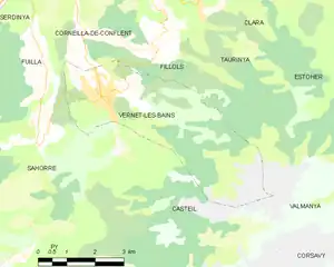 Vernet-les-Bains [vɛʁnɛ le bɛ̃] (seulement Vernet en catalan[1]) est une commune française, située dans le centre du département des Pyrénées-Orientales en région Occitanie. Sur le plan historique et culturel, la commune est dans le pays de Conflent, correspondant à l'ensemble des vallées pyrénéennes qui « confluent » avec le lit creusé par la Têt entre Mont-Louis et Rodès.