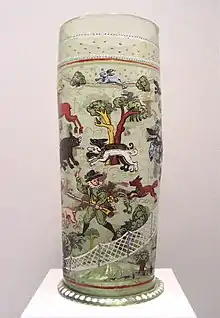À la fin du XVIe siècle apparaît le cristal de Bohême qui vient concurrencer celui de Murano. À la même époque, Caspar Lehmann (en), orfèvre à Prague, adapte la technique de la gravure à la roue des pierres précieuses à la taille du verre. Les verres s'ornent alors de motifs et de dessins innombrables.