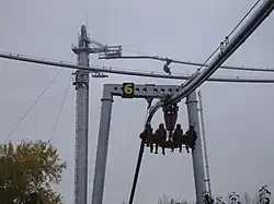 Cette attraction suit un principe qui se situe à mi-chemin entre le téléphérique et les montagnes russes. Les visiteurs prennent place dans une nacelle qui se compose de quatre sièges ; celle-ci se balance en avant et en arrière, avançant sur une armature de fer à forme de tube, qui elle-même est retenue par un câble pour ainsi se positionner dans la partie ascenseur de l'attraction. Les sièges sont ainsi amenés à une hauteur d'environ 55 mètres. Les nacelles sont ensuite lâchées par le processus de freinage de l'ascenseur pour ainsi parcourir une balade à grande vitesse qui est d'environ 60 km/h sur une distance d'environ 722 mètres pour finalement revenir à la gare de l'attraction.