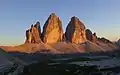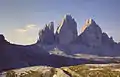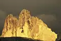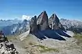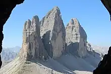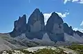 Les Tre Cime di Lavaredo sont les trois Cimes les plus célèbres des Dolomites [3], composées de la Cime Grande (2999m) la plus haute et centrale, Cima Ovest (2973m) à l'Ouest et la Cima Piccola (2 857 m) la plus petite. Fréquemment utilisées comme un symbole des Dolomites, elles sont en première page du site de la Fondation Unesco.
