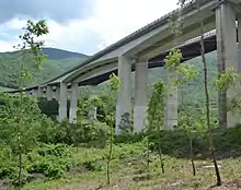 L'ancien pont en béton précontraint (au premier plan) après rénovation.