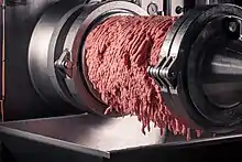 Dans le procédé à basse pression, la carcasse est broyée moins finement et passée sous basse pression à travers un filtre à orifices plus larges (environ 3 mm), donnant une viande ressemblant à de la viande hachée[3],[4],[5],[6]. Le résultat est aussi appelé « viande dénervée »[6].