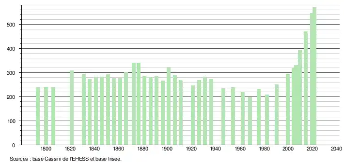 - Fiches Insee - Populations légales de la commune pour les années 2006, 2007, 2008, 2009, 2010, 2011, 2012, 2013, 2014, 2015, 2016, 2017, 2018, 2019, 2020 et 2021.