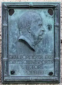 Après cela, Podbielski consacre son activité au sport. En 1909, il devient président du Comité de l'Empire allemand pour les Jeux Olympiques (DRAfOS) et dirige l'équipe olympique allemande aux Jeux Olympiques de Stockholm en 1912. En tant que membre du conseil d'administration de l'Union-Klub pour les courses de chevaux, il joue un rôle clé dans la création de l'hippodrome de Grunewald (de) en 1909 et obtient le financement du stade allemand construit à l'intérieur de l'hippodrome et achevé en 1913, puis à Grunewald sur le site de stade olympique d'aujourd'hui. Les Jeux olympiques de 1916 devaient s'y tenir, mais sont annulés en raison de la Première Guerre mondiale[4]. Un chêne distinctif situé dans le stade est planté à l'occasion de son 70e anniversaire et nommé Podbielskieiche en sa présence en 1914. Un chêne est planté dans le stade Ostmark (de) de Francfort-sur-l'Oder et porte également son nom.