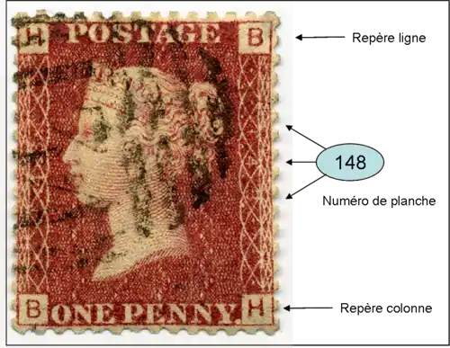 - La position de chaque timbre dans une planche est repérée par des lettres identifiant lignes et colonnes ;
