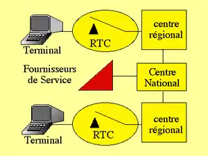 - Le Minitel, lancé en 1982 en France, est le service commercial qui a connu le plus de succès, en partie grâce à la variété des services disponibles et à son mode de facturation, basé sur l'utilisation de points d'accès intégrés au réseau téléphonique commuté : pas d'abonnement et temps de connexion comptabilisé dans la facture téléphonique classique. Télétel, le réseau du Minitel, a cessé d'être exploité le . Des systèmes dérivés ont été expérimentés aux États-Unis (Bell South), en Chine... sans donner lieu à des exploitations commerciales. DoCoMo utilise aujourd'hui, au Japon, l'architecture du système français (point d'accès et facturation sur la facture téléphonique) pour ses services i-mode
