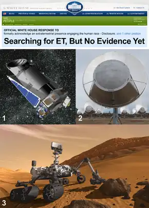 - (en) Russell Tepper, « White House: “Searching for ET, But No Evidence Yet” », sur Foreign Policy, (consulté le ).