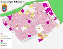 - (es) Cet article est partiellement ou en totalité issu de l’article de Wikipédia en espagnol intitulé « Casco Antiguo de Pamplona » (voir la liste des auteurs).