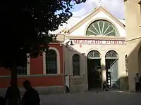 - Edificio La Agrícola : construit pour la banque et les assurances La Agrícola. C'est une conception de Francisco de Urcola de 1910 et achevé en 1913. Des années plus tard ce fut le Gran Hotel de luxe, fermé en 1934, et pendant une période, entre 1914 et 1924, le Gobierno Civil avec entrée par la nouvelle rue. C'est depuis 1972 la bibliothèque municipale . C'est un bâtiment aux proportions inhabituelles dans l'architecture civile du Casco Viejo de Pampelune. Il a une grande richesse et une variété d'éléments, avec la singularité de ses angles arrondis couronnés avec des coupoles et mosaïque au coloris de dessin végétal sur son fronton central. Un exemple d'architecture éclectique avec quelques touches modernistes.