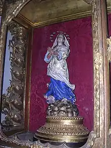 - à Sigale (Alpes-Maritimes), chapelle Notre-Dame d'Entre-Vignes, statue de Marie les deux mains croisées sur le ventre[3],
