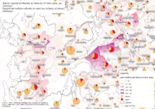 Présence du vignoble lorrain sur la carte d’occupation des sols. Les zones principales y sont les côtes de Toul, côtes de Meuse, côtes de Moselle, ainsi que le grand Couronné, le Saintois et le Vermois.