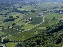 En raison des conditions climatiques, la vigne se limite aux Préalpes et aux versants les mieux exposés des vallées alpines, moins froides. La baisse moyenne de température est de 1 °C tous les 116 mètres ; au-dessus de 600 mètres d'altitude, le différentiel de température est de 1° par 247 mètres de dénivelé.