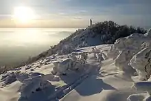 Vue depuis le sommet du Vihorlat avec, au loin, le mont Kyjov (821 m), en hiver.