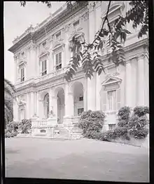 Détail de la corniche et des pilastres corinthiens de la façade principale