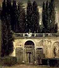 | Jean-Achille Benouville, La Villa Médicis | huile sur bois, 55 × 91 cm, vers 1864, collection privée | ![]() |