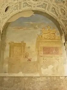 Le mur droit de la loggia porte une fresque représentant le Sacrifice de Laocoon, de Filippino Lippi.