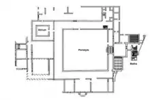 Le long du bras ouest du péristyle était probablement préexistante une série de pièces incorporées et restructurées en même temps que le jardin monumental avec surélévation des allées et déplacement de l'entrée des pièces sur le côté est, avec ouverture directe sur le portique. Un atrium était entouré d'un portique.