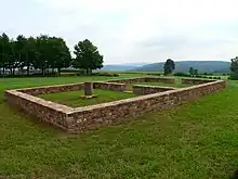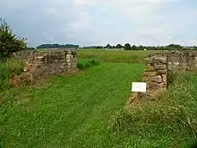 La villa s'organise à l'intérieur d'une cour carrée de 183,5 sur 185,5 mètres[1], protégée par un mur d'une épaisseur moyenne de 0,75 à 1 mètre. Les coins du mur sont à peu près alignés selon les points cardinaux. La porte d'accès d'une largeur de passage de 3,60 mètres est située au milieu du côté nord-ouest. En 1880, l'excavateur Heinrich Gieß a signalé que "deux énormes blocs de grès avec des pans de porte intégrés" [2] avaient été brisés sur le site".