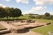 À l'intérieur de l'enceinte se trouvaient une maison de maître inhabituellement grande, une aile de service attenante, un bâtiment de bains et un sanctuaire dédié à Jupiter. Ce dernier est presque au centre du site, alors que la maison principale occupe l'est de la zone.