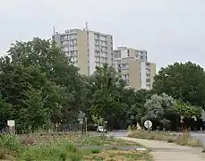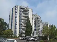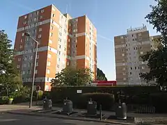 - 12 tours construites en 1968-1969 (1 % patronal et HLM) de 4 à 17 niveaux en descendant dans la vallée de la Bièvre. Elles ont été réhabilitées à la fin des années 1990 avec création de balcons et sont devenues des copropriétés[16].