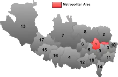 La préfecture de Shigatsé exerce sa juridiction sur dix-huit subdivisions - une ville-district et dix-sept xian :
