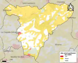 Le retrait-gonflement des sols argileux est susceptible d'engendrer des dommages importants aux bâtiments en cas d’alternance de périodes de sécheresse et de pluie. 67,9 % de la superficie communale est en aléa moyen ou fort (84,7 % au niveau départemental et 48,5 % au niveau national). Sur les 1 270 bâtiments dénombrés sur la commune en 2019, 1025 sont en aléa moyen ou fort, soit 81 %, à comparer aux 86 % au niveau départemental et 54 % au niveau national. Une cartographie de l'exposition du territoire national au retrait gonflement des sols argileux est disponible sur le site du BRGM[27],[28].