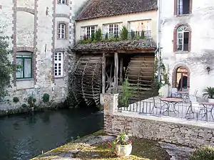 - Moulins banaux du XVIe siècle. Ces moulins à eau, propriété des archevêques, ont été reconstruits par le marchand Jacob Moreau à la fin des guerres dites de Religion[28]. Les roues sont de grande dimension et profitent d'une belle chute d'eau.