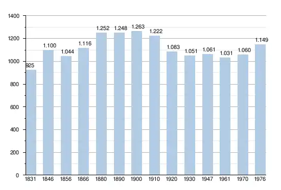 • Sources:INS, Rem:1831 jusqu'en 1970=recensements, 1976= nombre d'habitants au 31 décembre