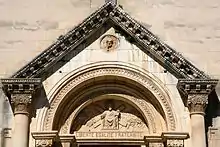 - Église paroissiale[31] Saint-André qui a remplacé en 1854, l'église primitive située au cœur du village. Curieusement, sur la façade du bâtiment sont gravés les mots « République Française » de part et d'autre de l'entrée, et sous le tympan, le linteau porte la devise « Liberté Égalité Fraternité », à la suite d'une décision municipale de 1891.