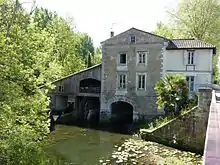 L'attier (bras secondaire) de la Dronne au pont de la RD 708.