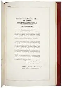 Le XXIIe amendement de la Constitution des États-Unis fixe à deux la limite du nombre de mandats que peut exercer le président des États-Unis qu'ils soient consécutifs ou non[1]. Le Congrès adopte l'amendement le . Ses dispositions entrent en vigueur le , après ratification de l'amendement par les 36 États requis de l'époque sur les 48[2].