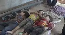 Durant le conflit syrien, depuis 2011, les exactions ont été nombreuses et attribuées aux différents belligérants, en particulier au régime syrien, accusé de multiples crimes de guerre et crimes contre l'humanité.