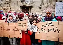 Au début du mois de février 2012, le Fonds des Nations unies pour l'enfance estimait en outre que plus de 500 enfants avaient été tués[37] ; 400 enfants supplémentaires auraient aussi été arrêtés et torturés dans les prisons syriennes[38]. Ces deux informations ont été contestées par le gouvernement syrien.