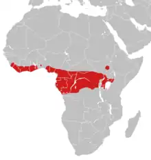 Cette espèce se rencontre en Afrique[1] centrale, et de l'Ouest, tout autour du Golfe de Guinée :