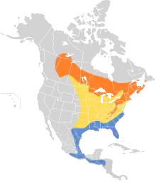 Cet oiseau vit au Canada à l'est des Montagnes Rocheuses et dans le nord-est des États-Unis. Il migre vers le sud-ouest des États-Unis et l'Amérique centrale.