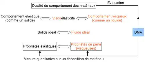 La viscoélasticité est la propriété de matériaux qui présentent des caractéristiques à la fois visqueuses et élastiques, lorsqu'ils subissent une déformation. Les matériaux visqueux, comme le miel, résistent bien à un écoulement en cisaillement et présentent une déformation qui augmente linéairement avec le temps lorsqu'une contrainte est appliquée. Les matériaux élastiques se déforment lorsqu'ils sont contraints, et retournent rapidement à leur état d'origine une fois la contrainte retirée. En rhéologie, le comportement d'un matériau viscoélastique linéaire est ainsi intermédiaire entre celui d'un solide élastique idéal symbolisé par un ressort de module E (ou G) et celui d'un liquide visqueux newtonien symbolisé par un amortisseur de viscosité . L'élasticité d'un matériau traduit sa capacité à conserver et restituer de l'énergie après déformation. La viscosité d'un matériau traduit sa capacité à dissiper de l'énergie. Les polymères, en fait la plupart des matériaux, ont un comportement viscoélastique.