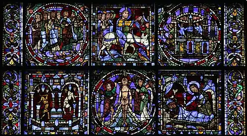 La verrière représente l'enfance et une partie de la vie publique du Christ[1].
