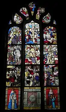 La maîtresse-vitre (baie 0) représente, en neuf tableaux, la Passion du Christ : le Christ devant Caïphe, le Christ souffleté, le Christ devant Ponce Pilate, la flagellation, le couronnement d'épines, Ecce homo, la montée au calvaire, la crucifixion et la descente de croix. Plusieurs personnes y figurent habillés à la mode du XVIe siècle.