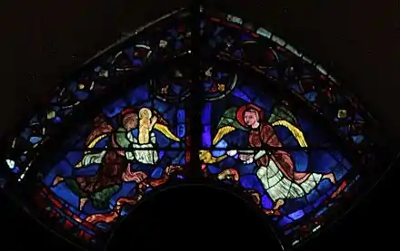 La verrière a été réalisée au tout début du XIIIe siècle, entre 1210 et 1225. Elle est donc contemporaine de la cathédrale actuelle. La verrière a été classée aux monuments historiques dès 1840[1]. Elle a été restaurée par Gaudin en 1921[1], puis en 1999.