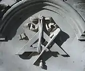 Sépulture espagnole sculptée d'après les outils maçonniques, dont l'équerre.