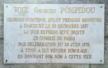 Elle est nommée d'après l'ancien président de la République Georges Pompidou (1911-1974) qui l'avait inaugurée en 1967 quand il était Premier ministre et avait initié le plan autoroutier pour Paris dont cette voie est une des seules réalisations.