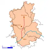 Dans le Loir-et-Cher, elle traverse Beauce la Romaine, la forêt de Marchenoir, Vievy-le-Rayé, Oucques la Nouvelle, Boisseau, Maves, Averdon, Marolles, Villebarou pour aboutir à Blois — elle y pénètre sans doute par la rue Porte chartraine[1].